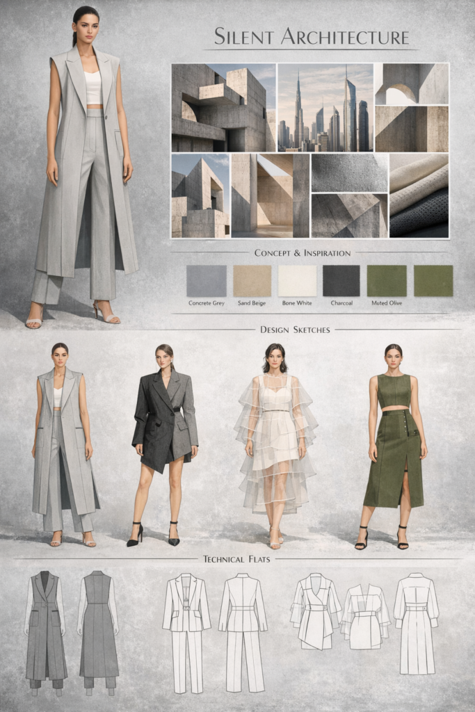 Modern fashion design also focuses on sustainable solutions, including smart material selection, long-lasting design, ethical production planning, and reducing waste through better pattern and product development.
